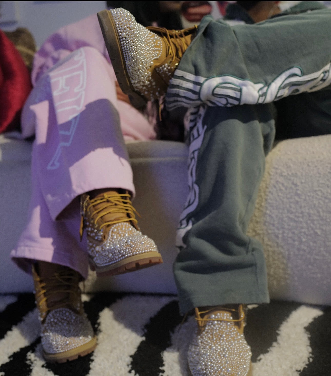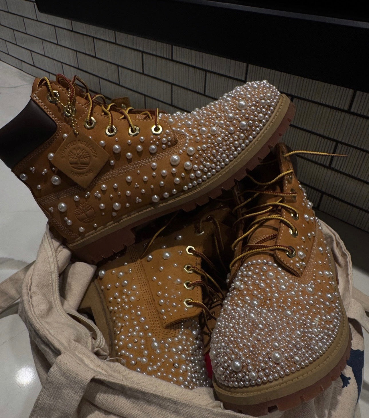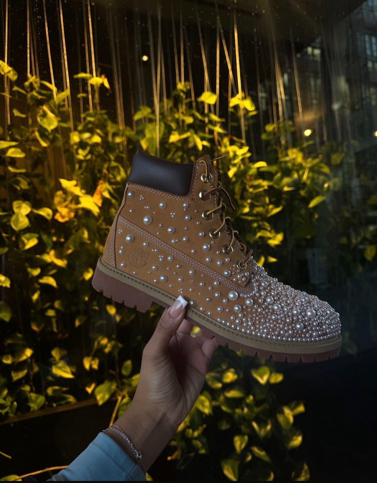 Elevate your street style with our pearly Timberlands, a perfect fusion of sophistication and urban flair.